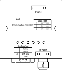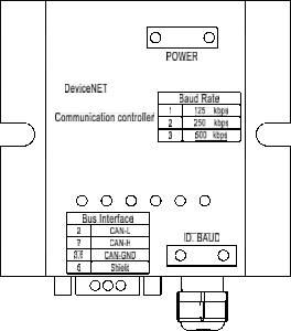 Bus address and baud rate of DeviceNet communication controller can be set by knob on panel, bus address is 1-9, baud rate is 125Kbps, 250Kbps, 500Kbps.