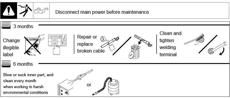 - Dismantle machine side panels and clean machine inside with clean and low-pressure compressed air by professional technician, not less than twice per year. Clean the components at a certain distance only;