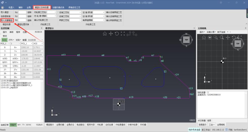 The Main Beam Special-Purpose Machine streamlines welding with a one-click online connection. Users import the model, select weld seams, record key points, and generate the point table. After manually setting the P point and confirming the model, inner contour scanning and correction are performed. Once verified, the system initiates seamless one-click welding for efficient, accurate results.