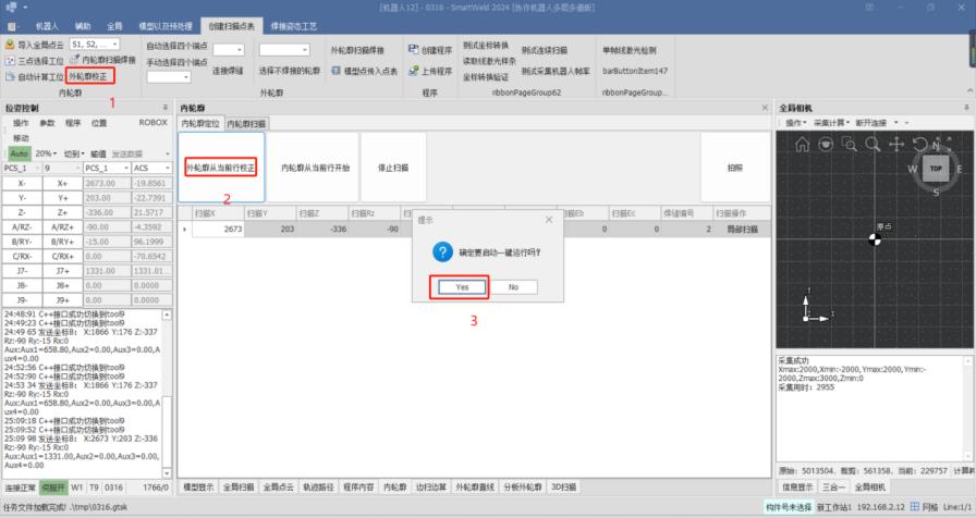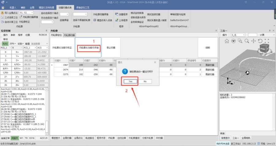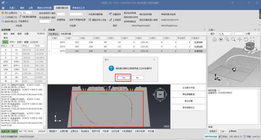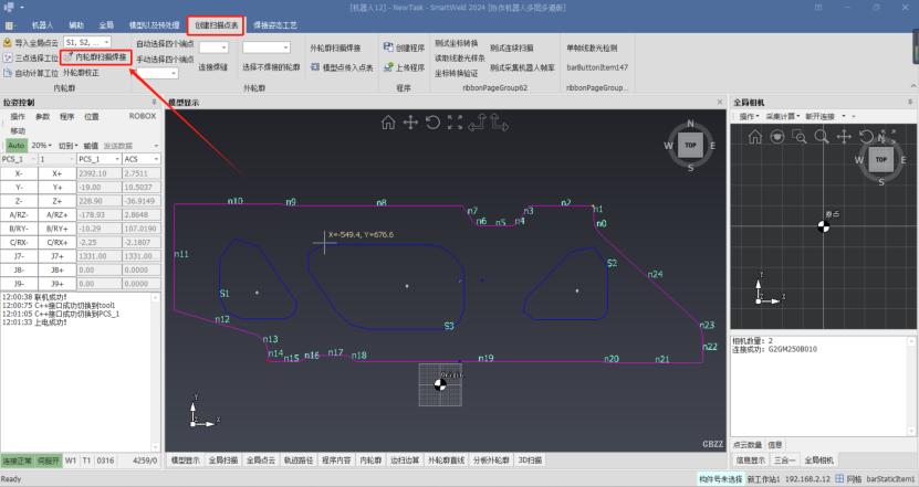 It scanned the welding seams of the outer and inner circles and uploaded the program to the robot.