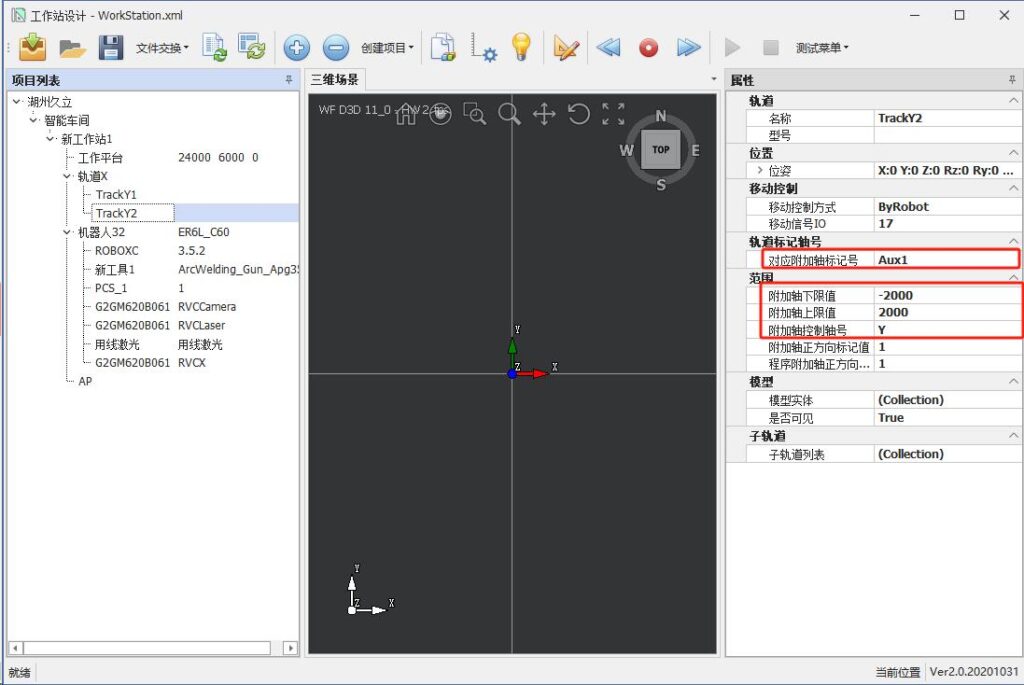 Fill in the upper and lower limit values of each auxiliary axis in the workstation design according to the actual conditions. Set the auxiliary axis control number and the corresponding auxiliary axis label based on the actual teach pendant settings.