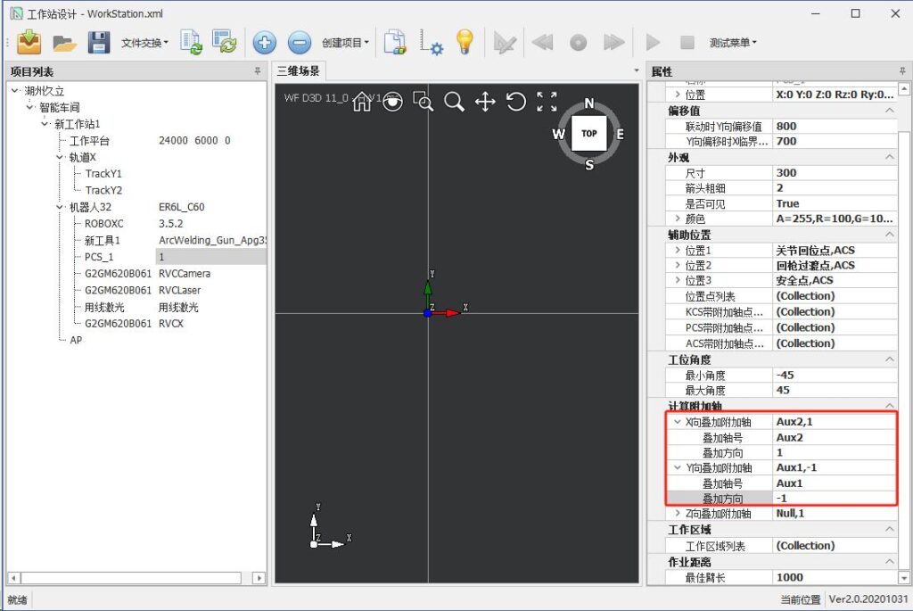 Set the auxiliary axis superimposed direction under the PCS corresponding to the main negative control, based on the actual installation orientation of the on-site robot.
