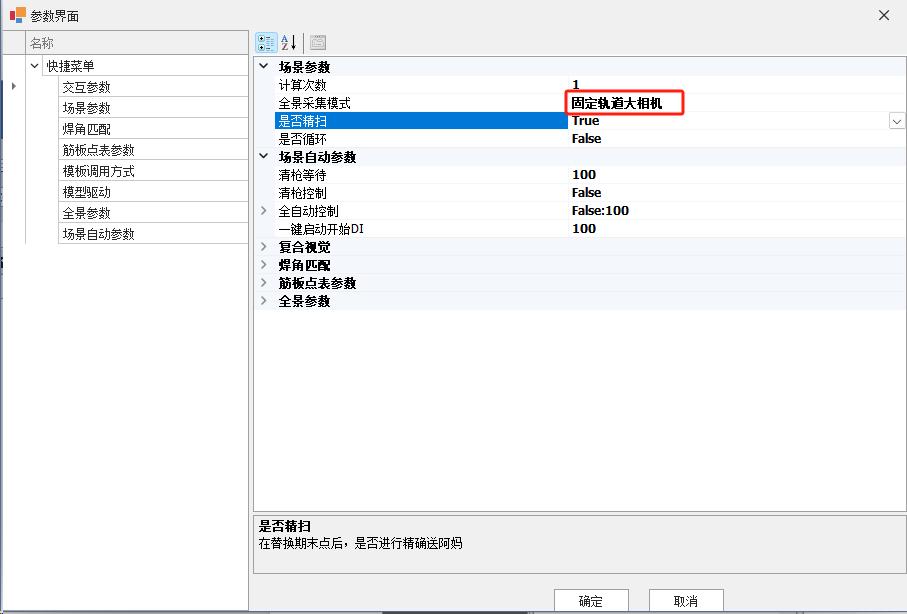 Under the auxiliary list, enter the profile steel parameter list and set the panoramic acquisition mode to “Fixed Rail Large Camera.Or fixed track large camera”